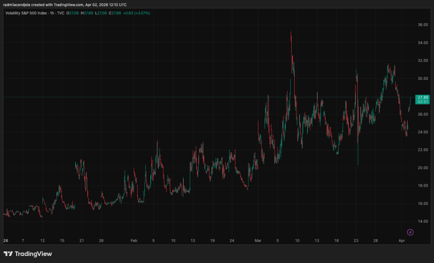 Graph showing the S&P 500 volatiliy index from Jan. 2 to Apr. 2, 2026 (Source: TradingView)