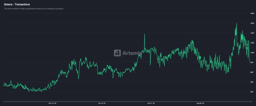 Daily Transactions dropped to 79.8 million, at press time, according to Artemis. That level last appeared in January 2026.
