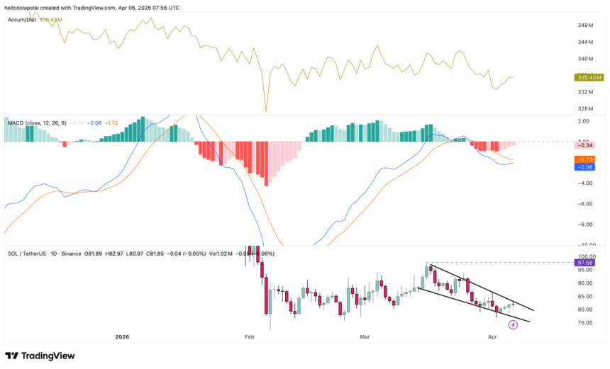 If accumulation persists, $SOL may break above its descending channel resistance. A confirmed breakout could push the price toward the $99 level.