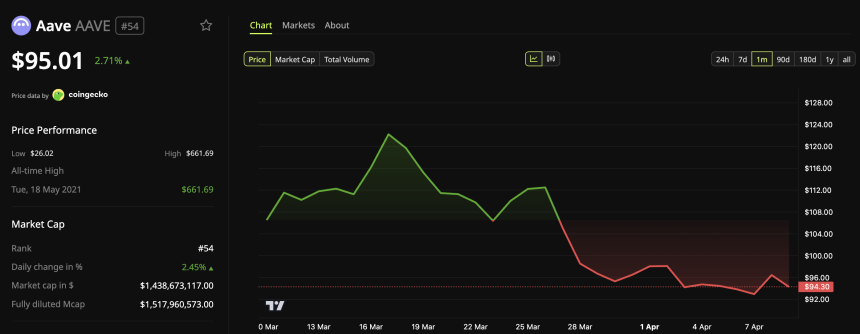 “Aave has recently faced several structural challenges, pushing the protocol into a negative spiral that led it to lose the important psychological threshold of $100 during March. Several internal disagreements followed a sequence of events within the protocol, including the departure of key contributors such as BGD Labs, and more recently Chaos Labs,” analyst Darkfost wrote.