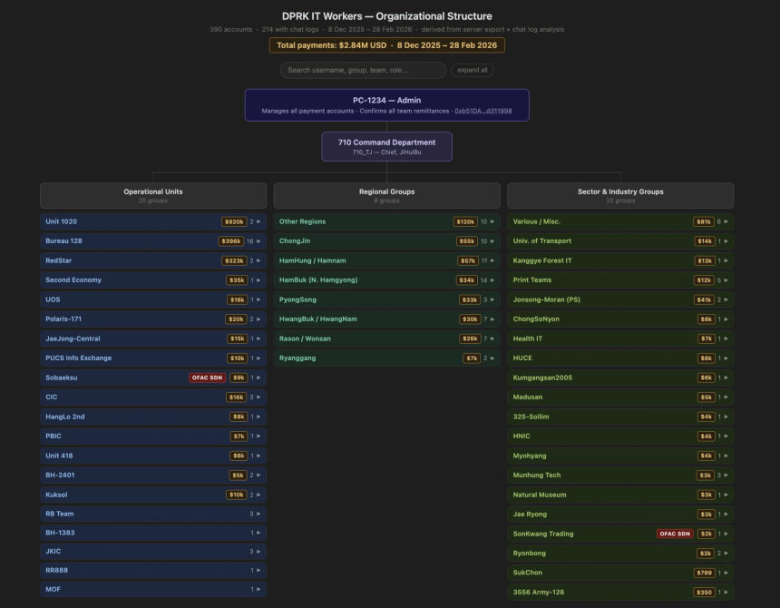 The North Korean IT workers who had their data exposed had a leaderboard showing how much crypto each IT worker had brought in for the organization since Dec. 8, with links to blockchain explorer pages showing transaction details.