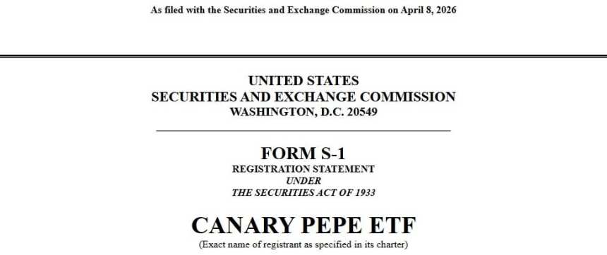 Canary Capital Group LLC, an investment firm focused on digital asset products, filed a registration statement with the U.S. Securities and Exchange Commission (SEC) on April 8. The filing outlines the proposed Canary $PEPE ETF (the Trust), designed to track the price of the $PEPE token. The product aims to provide regulated exposure to a meme-based cryptocurrency. The filing states: