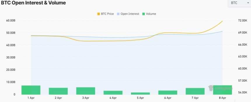 For instance, Bitcoins Open Interest (OI), the net value of active contracts held by traders across all exchanges, surged from $48 billion on April 1 to around $51.45 billion today, based on analytics from CoinGlass.