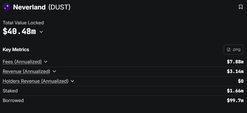 Annualized fees on Neverland reached $7.88 million. Annualized revenue was reported at $3.14 million. These figures reflected steady protocol usage.