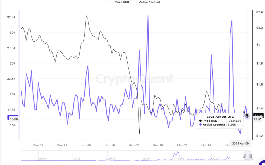 The number of addresses actively transacting on the $XRP Ledger (XRPL) by sending or receiving assets has declined to near 16,000 as of Thursday, from roughly 18,000 the previous day.