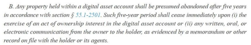 Under the new law, the state will consider digital assets in inactive accounts abandoned after five years. At that point, they move to state custody, but crucially, the state holds them ‘in kind,’ which means it will preserve the actual tokens rather than liquidate them into cash.
