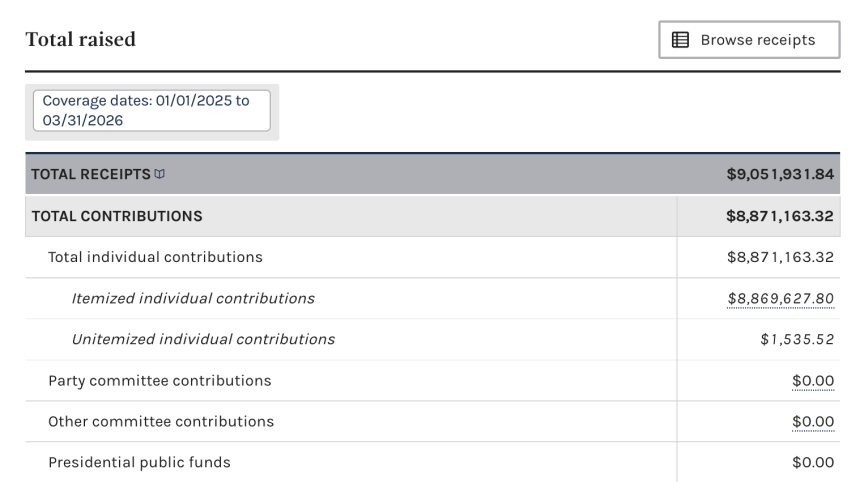 Although filings with the Federal Election Commission (FEC) as of Tuesday showed no disbursements supporting Husted in 2026, the PAC and its sister organization, Right Vote, pledged to spend more than $8 million in the Buckeye state. The Sentinel Action Fund reported about $9 million raised from January 2025 through March 2026, including $750,000 in contributions from the digital asset advocacy organization Solana Policy Institute and $250,000 from crypto investment company Multicoin Capital.