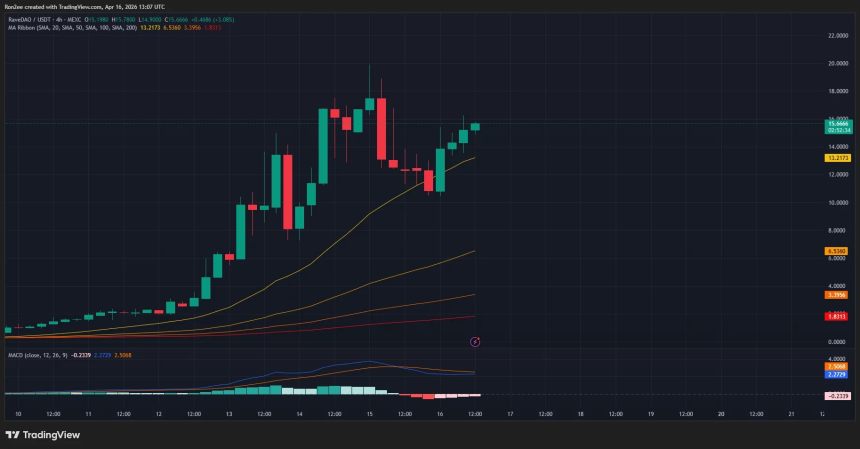 $RAVE 4-hour/USDT price chart — April 16 | Source: crypto.news