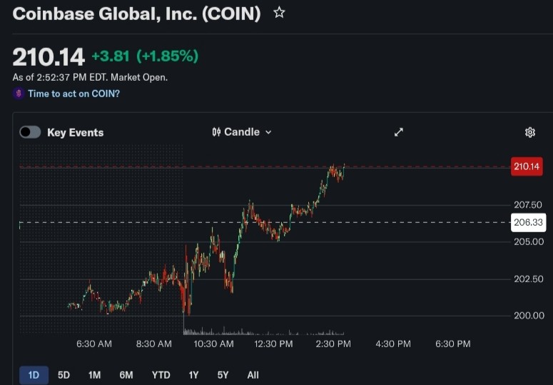 After the announcement, the Coinbase exchange (COIN) stock increased by 1.44% to $209.31 on Monday, April 20.