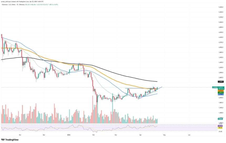 A short-term uptrend, with higher lows and consistent buying pressure on dips, is currently forming for the asset, which is trading in the $2,400 range. Although the worst of the recent decline may be behind it, the recovery is still uncertain according to this structural change.