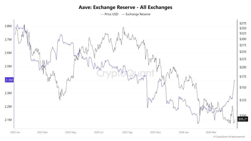 The latest move highlights that weakness. AAVE briefly pushed toward the $110–$115 area, testing the declining 50-day moving average, but was rejected quickly and sold back into its prior range. That rejection reinforces the role of dynamic resistance. Both the 50-day and 100-day moving averages are trending downward, capping upside momentum.