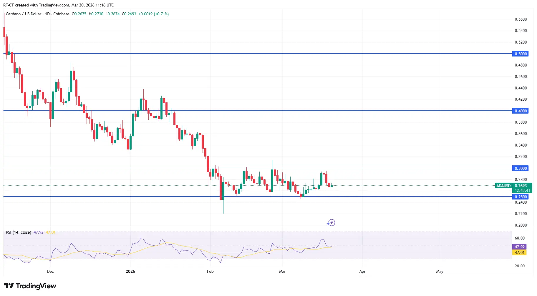TL;DR:Key prices and levels:Cardano is currently trading around $0.27, with critical support at $0.2