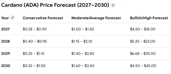 Googles AI model Gemini projects Cardano ($ADA) could mount a significant rally between 2027 and 203