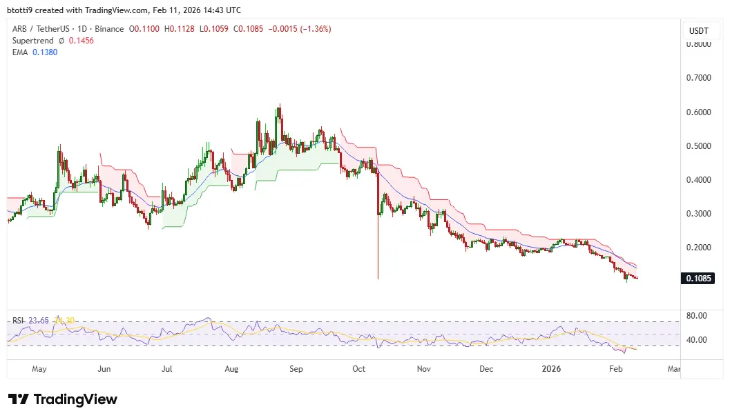 Arbitrum price hovered near $0.10 as cryptocurrencies saw fresh declines.The token was down nearly 2