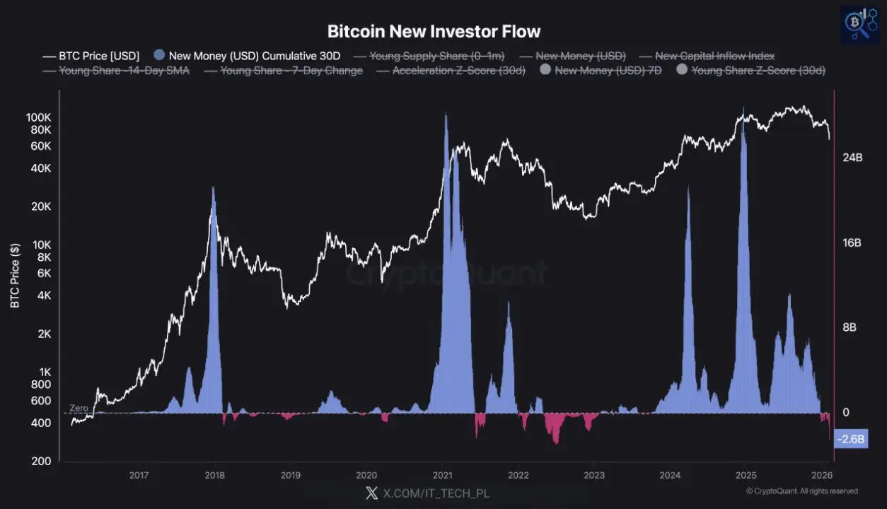 Bitcoin ($BTC) has fallen 23.4% so far this year, after declining more than 6% in 2025. Prices have