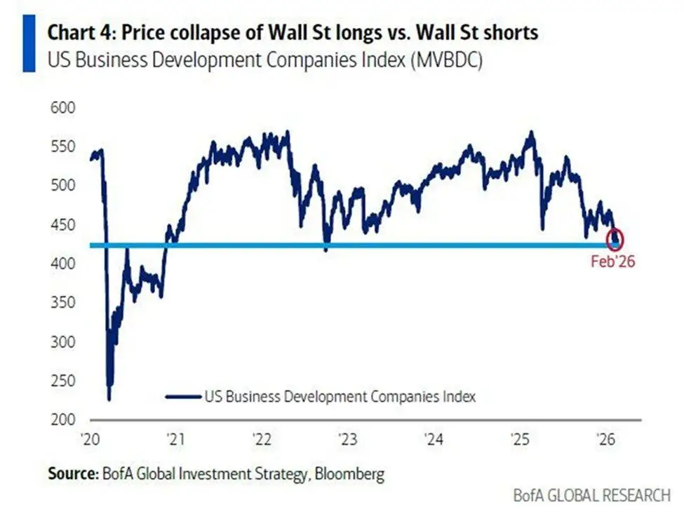 Credit market stress in the US is intensifying with the US Business Development Companies Index (MVB