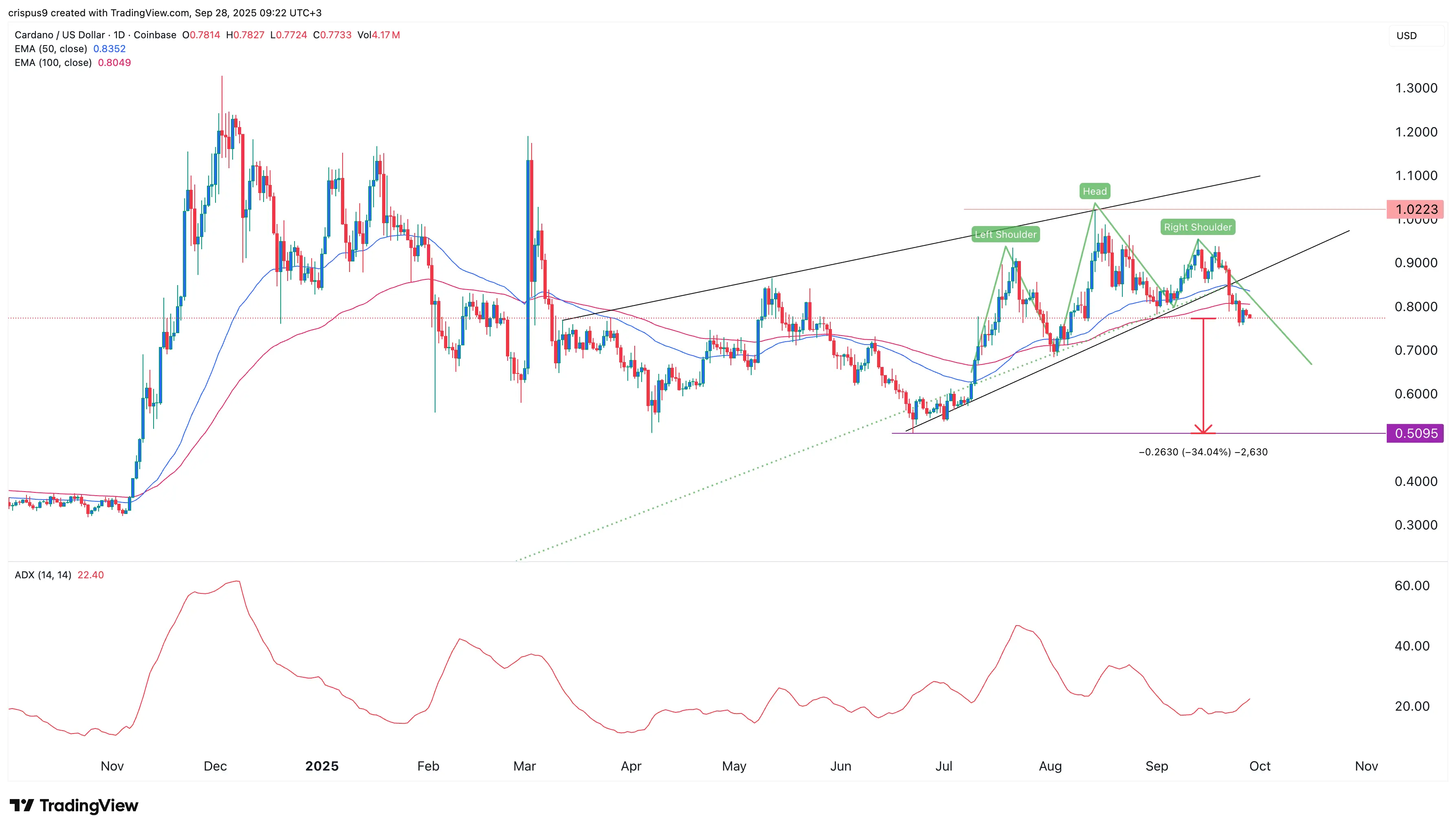 Cardano price has plunged into a bear market by over 24% from the year-to-date high; technicals in t