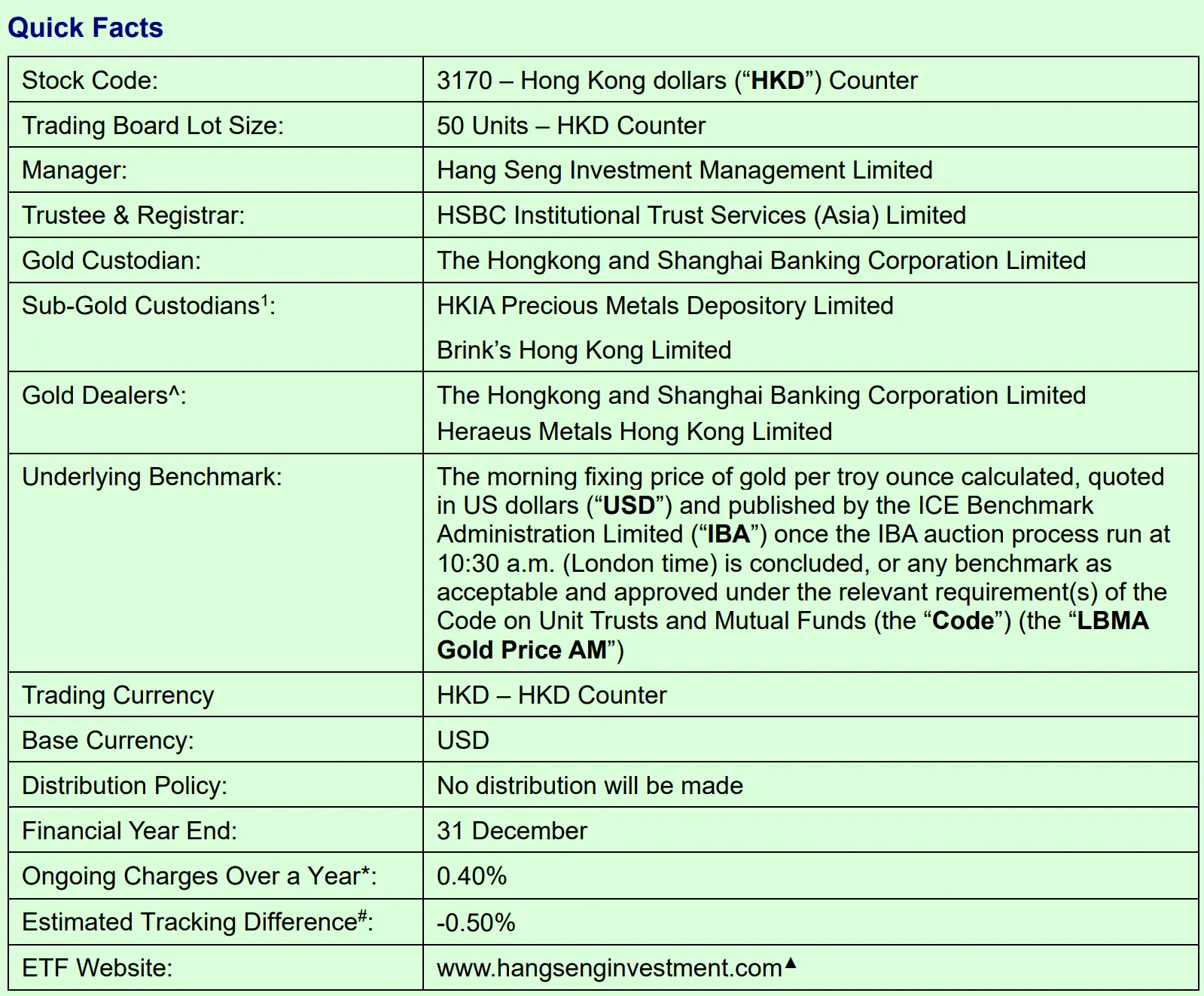 Hang Seng Investment Management has rolled out a new physically backed gold exchange-traded fund (ET