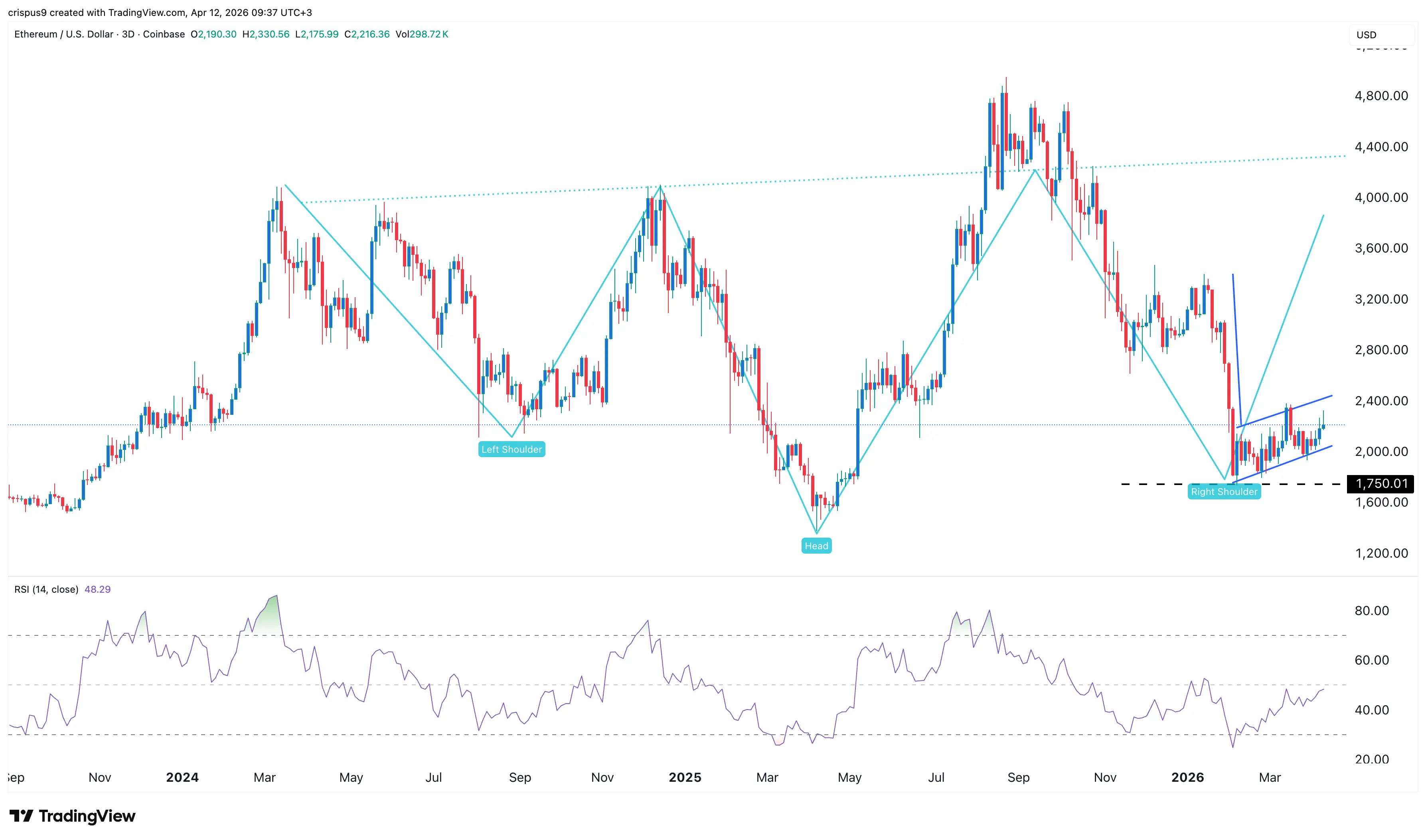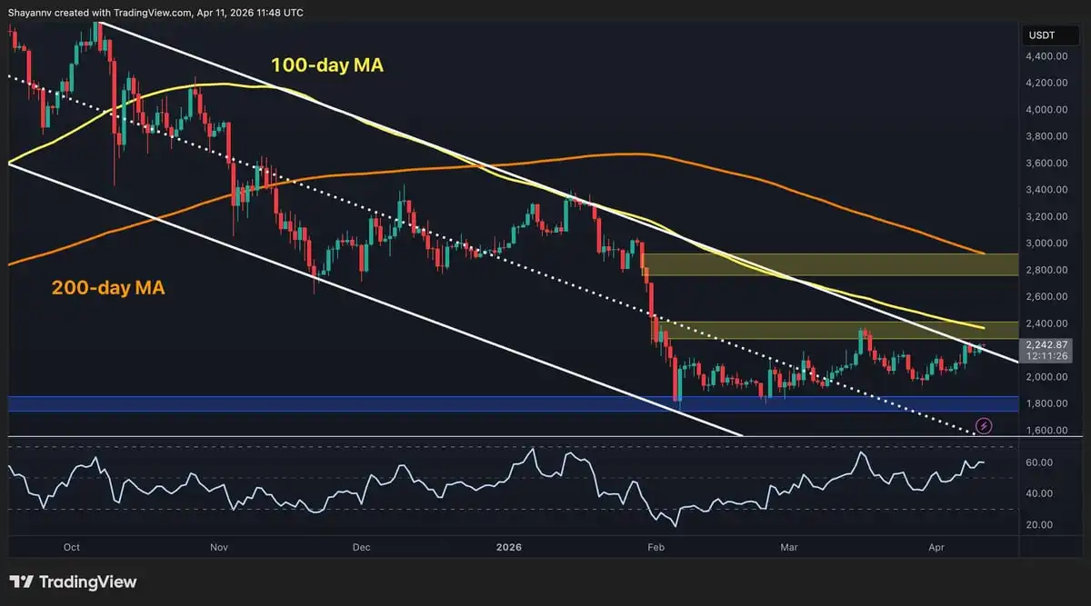 Following a period of consolidation, Ethereum price is currently trading around the $2,240mark, show