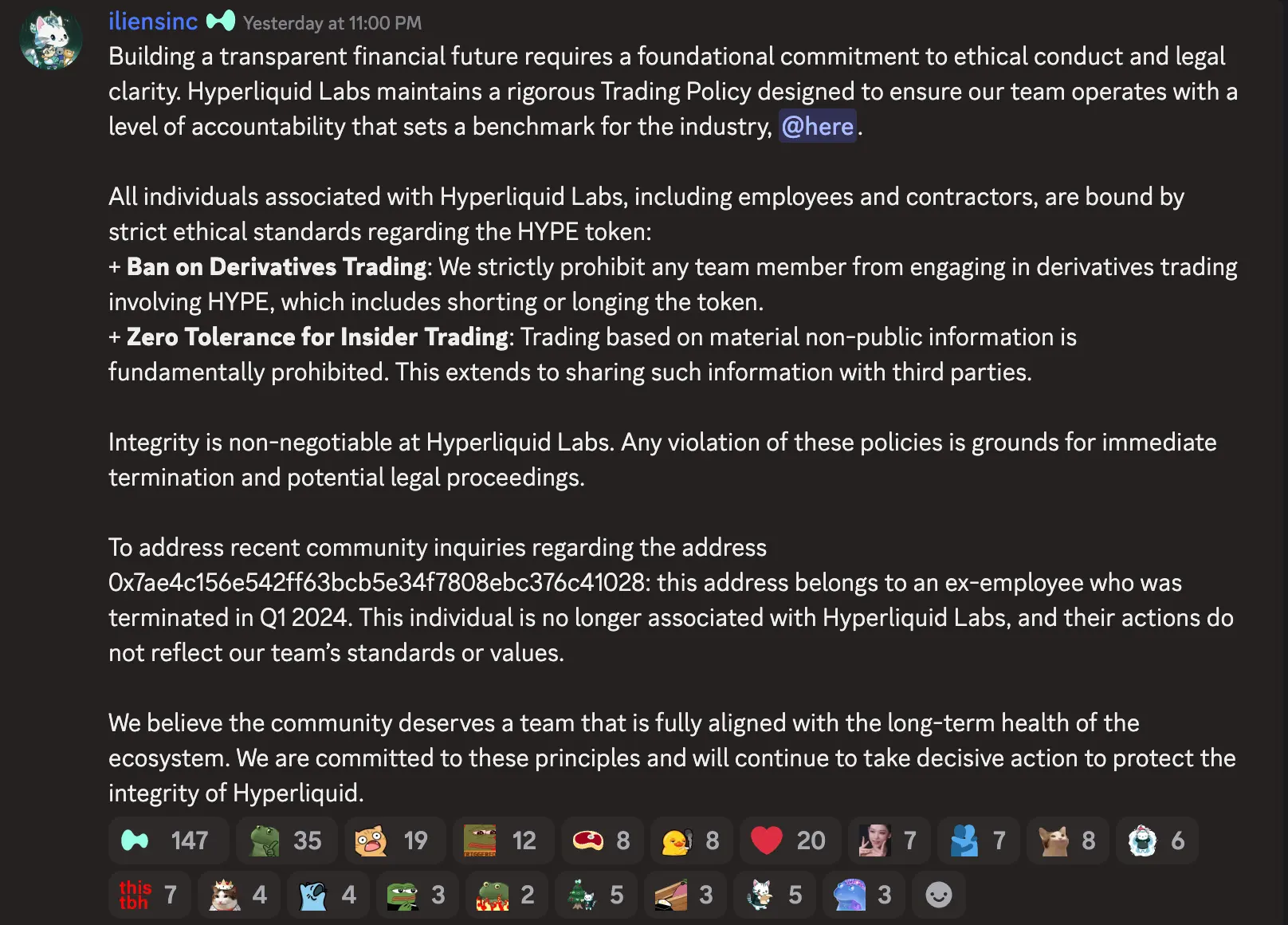 Decentralized perpetuals exchange Hyperliquid has addressed community concerns about a wallet that w