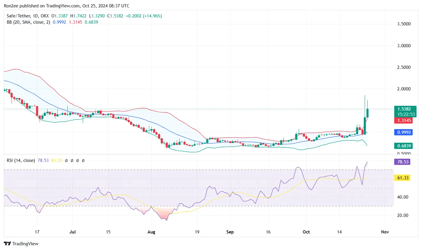 SAFE, the native token of Safe Wallet surged 72% over the last day after it secured a listing on Upb