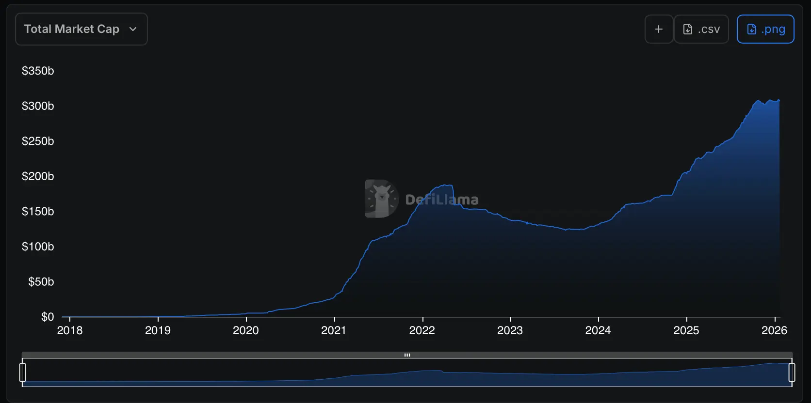 Seven days after the stablecoin sector printed a record $310.426 billion on Jan. 17, the market has