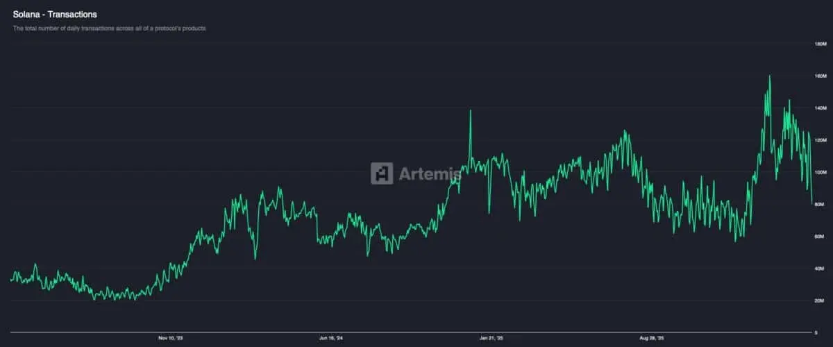 Solanas on-chain performance diverged from trading activity, as short-term momentum strengthened des