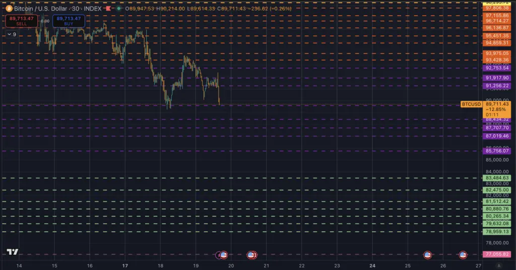 Bitcoin price today trades near $82,300 after falling sharply through the $90,000 support cluster. T