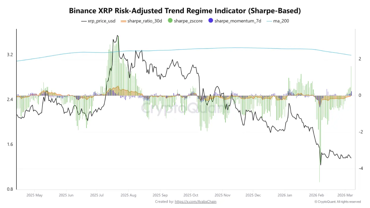 The $XRP Sharpe Z-Score hits an 8-month peak, suggesting improvement in risk-adjusted performance.$X