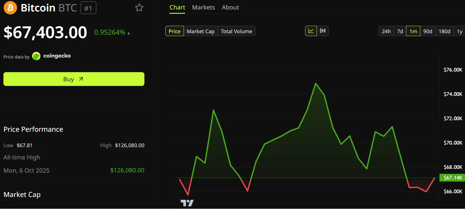 Bitcoin ($BTC) enters the final week of March trading near $67,400, facing a dense slate of US econo