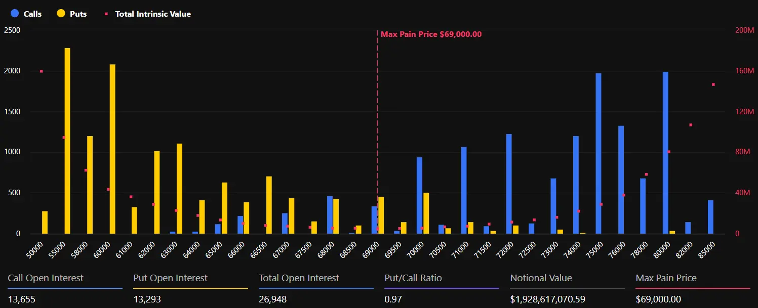 Over $2.3 billion in Bitcoin ($BTC) and Ethereum ($ETH) options near expiration today, amid growing