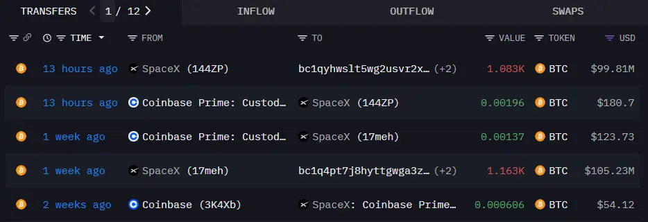 Story Highlights SpaceX transfers 2,395 BTC worth $268 million, sparking curiosity about Elon Musks
