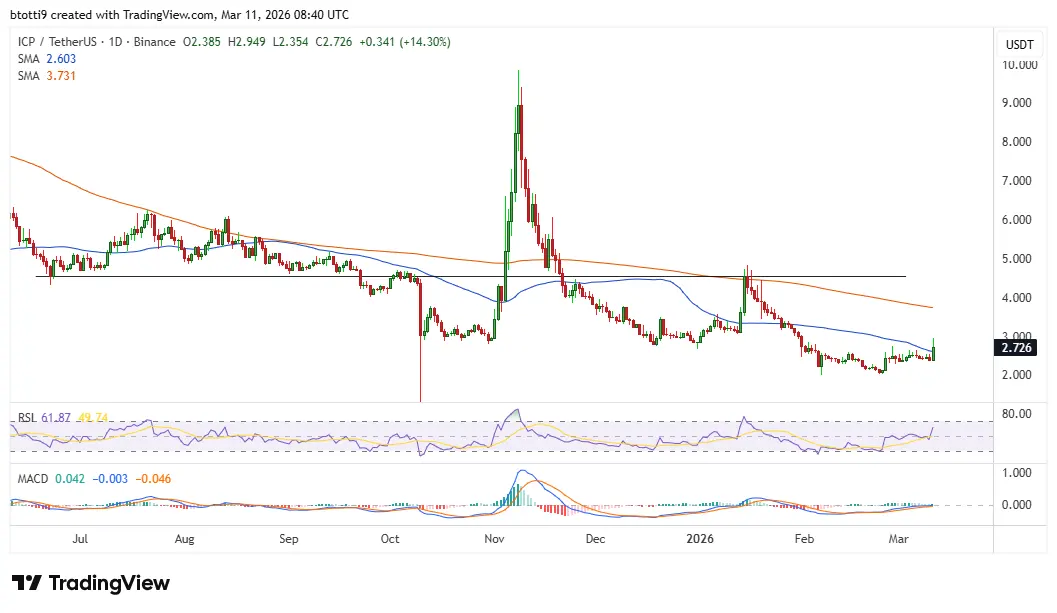 Internet Computer price jumped 12% to near $3 during Asian trading hours.The $ICP token hit the intr