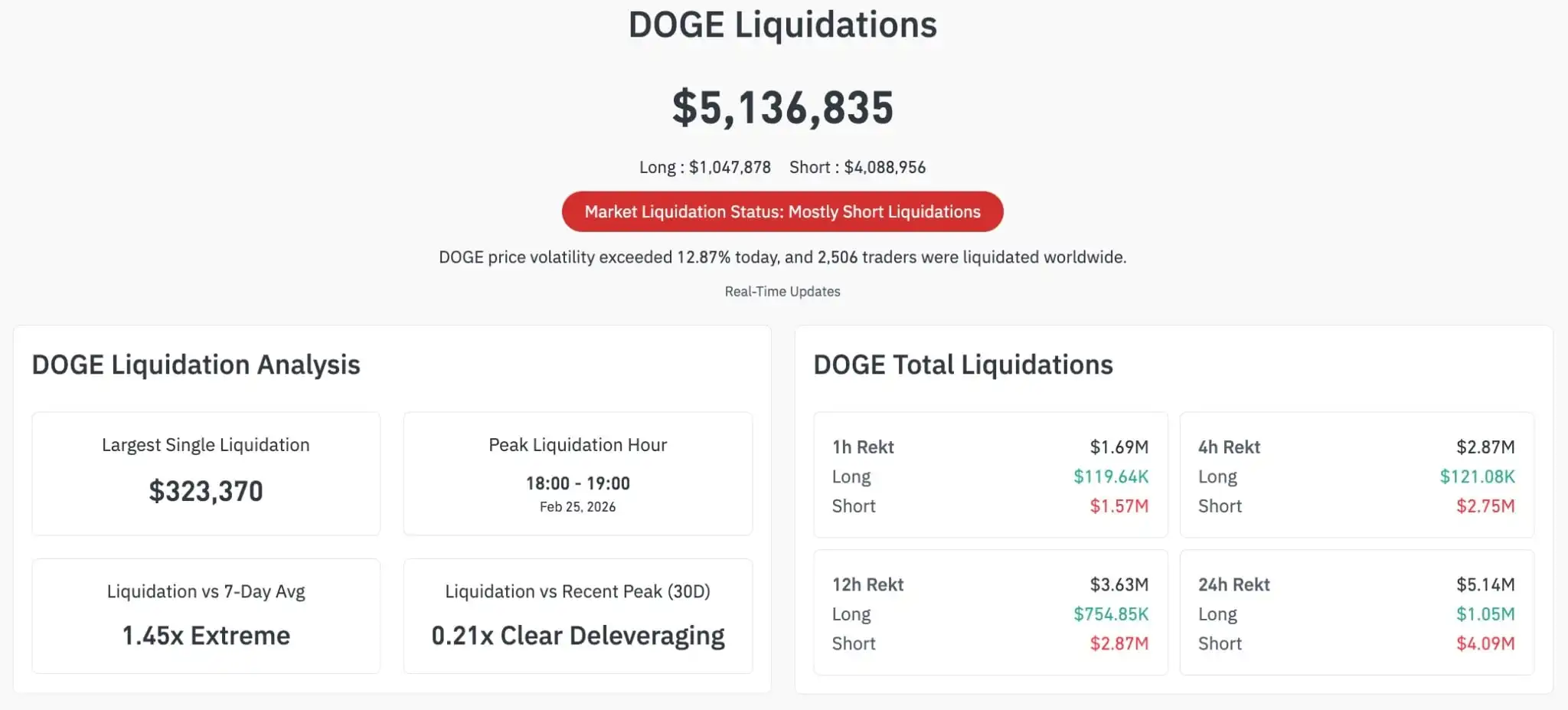 According to CoinGlass data, Dogecoin had a double-digit daily gain on Feb. 25 after a concentrated