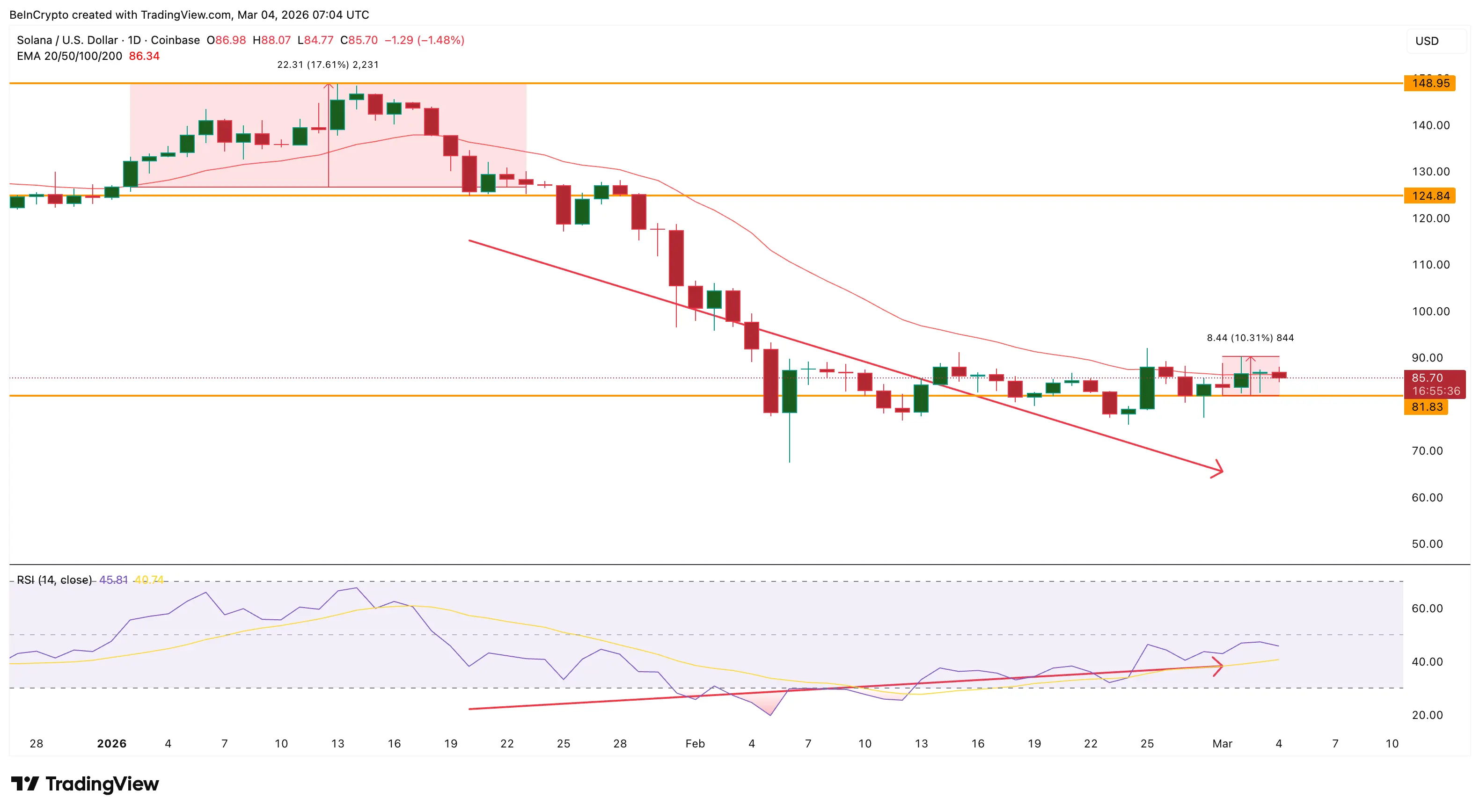 Solana price has been under pressure for weeks. The token is still down roughly 13% over the past mo