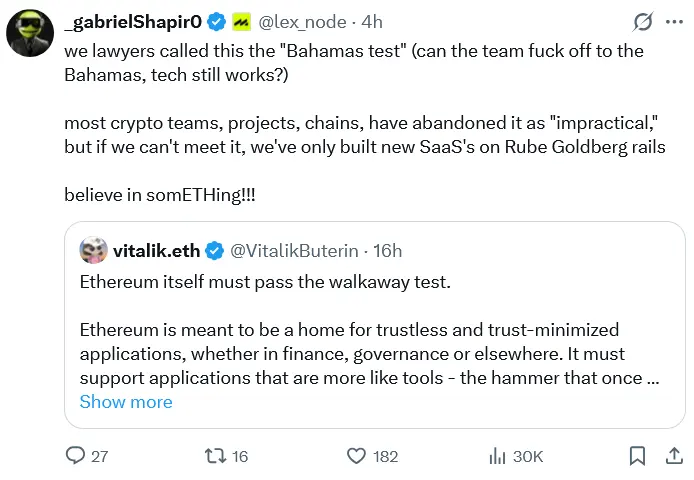 Ethereum needs to get to a point where its value proposition remains even if developers stop active