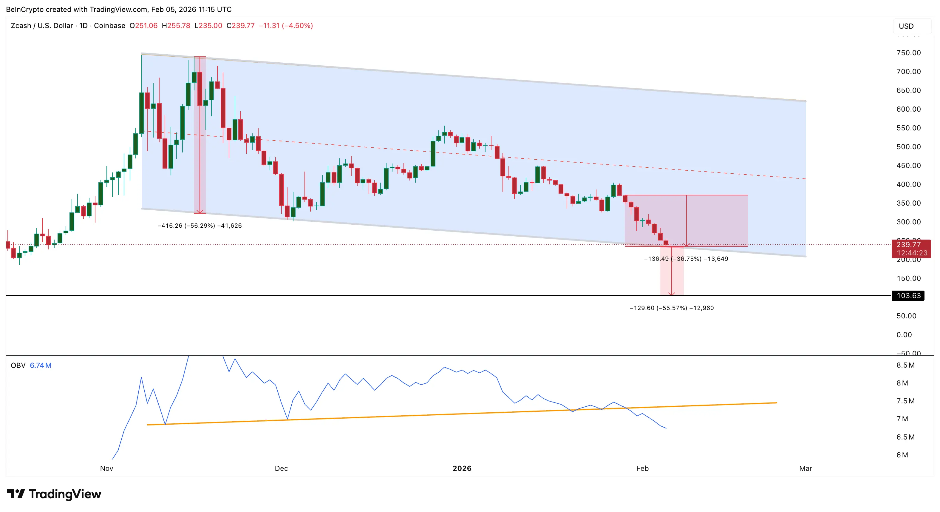 Zcash price remains under heavy pressure as bearish momentum continues to build across the market. A
