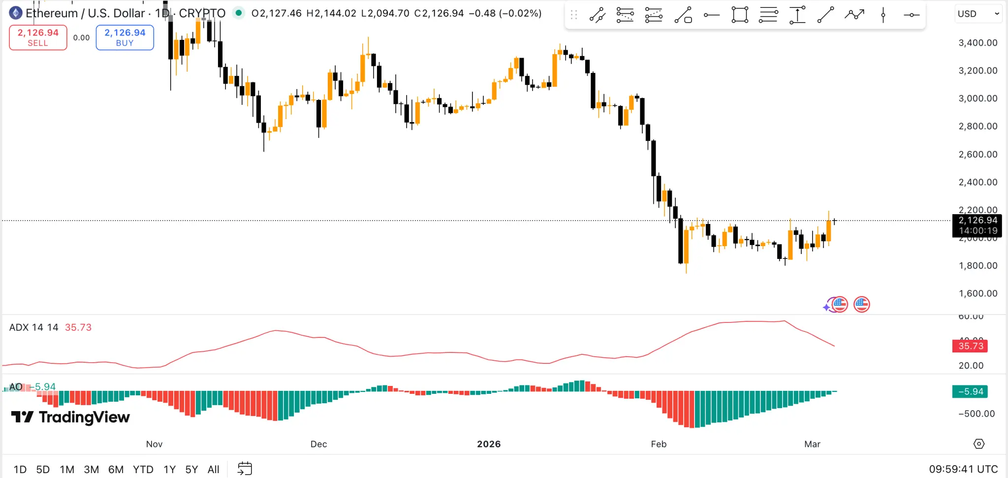 In a conflicted market environment, Ethereum today trades within a neutral higher timeframe while sh