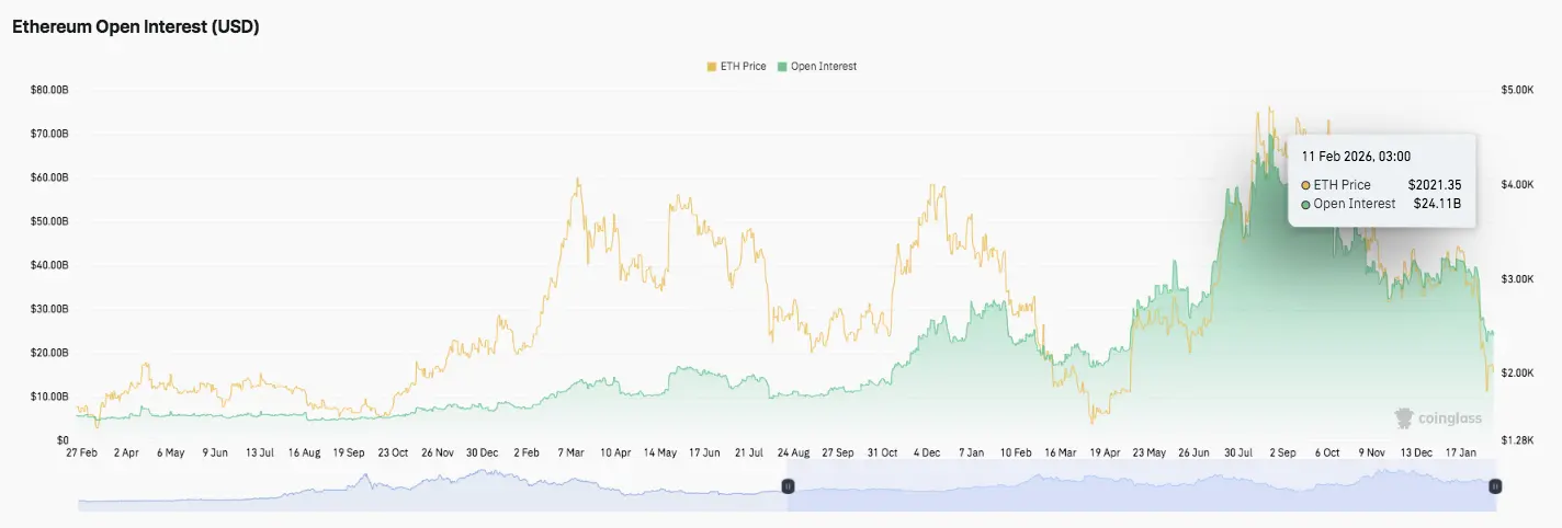 Ethereum trades near critical support after months of steady selling pressure. The 4-hour chart show