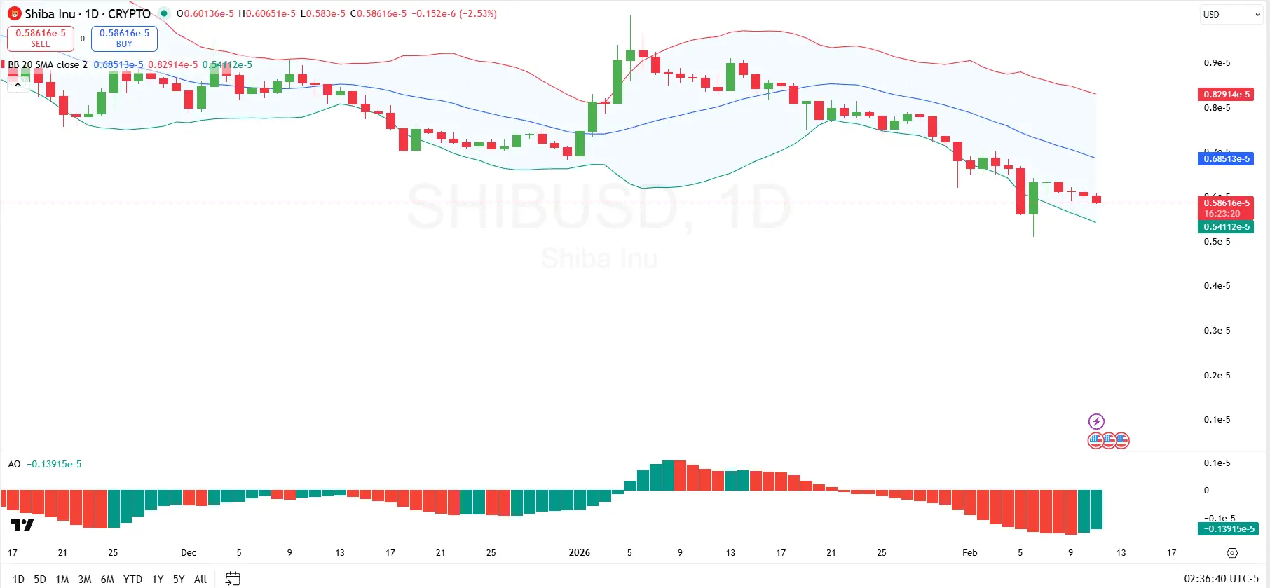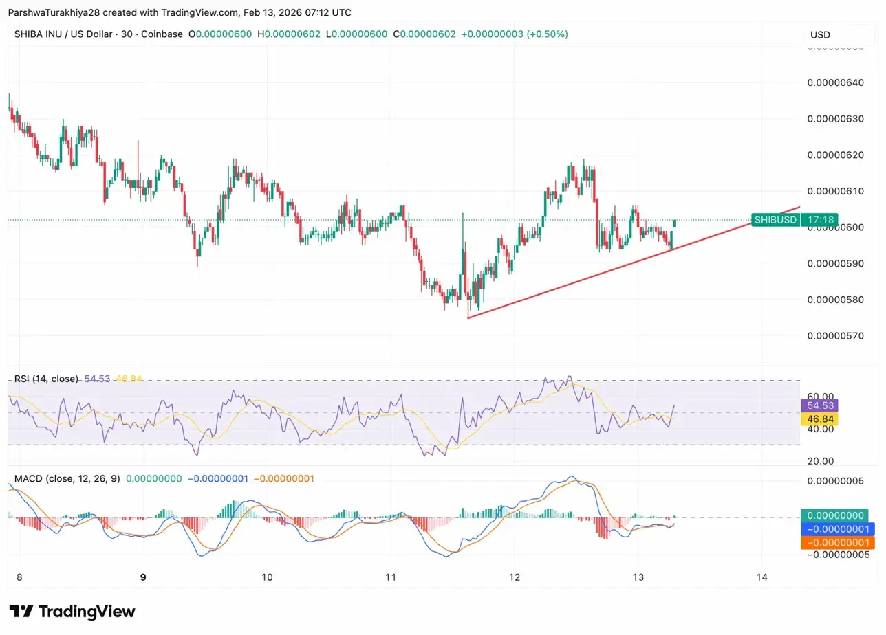 Shiba Inu price today trades near $0.00000600, down 0.66% in the past 24 hours after breaking below