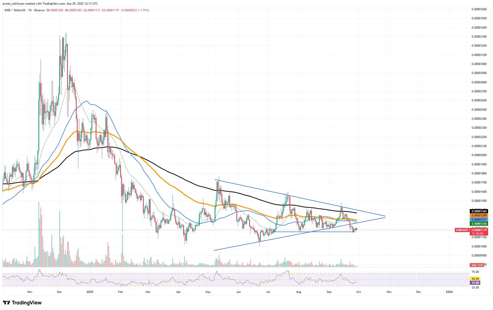 Following several weeks of sideways trading and repeated support tests, Shiba Inu (SHIB) is beginnin