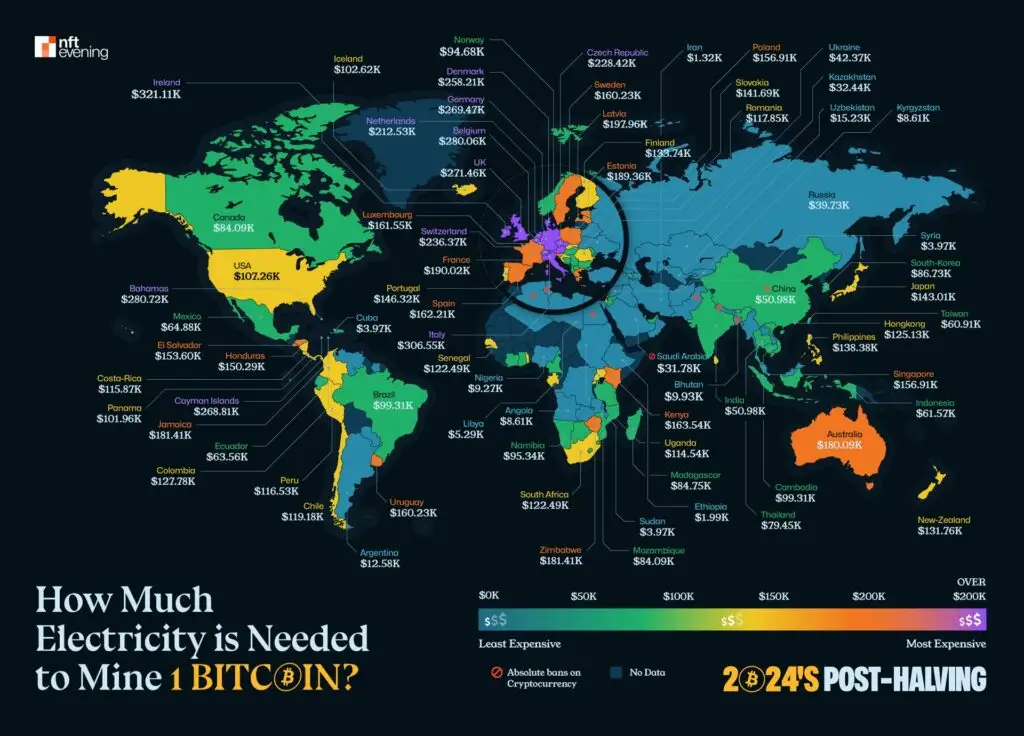 The cost of mining one Bitcoin drastically changed after Aprils halving, while eight countries with