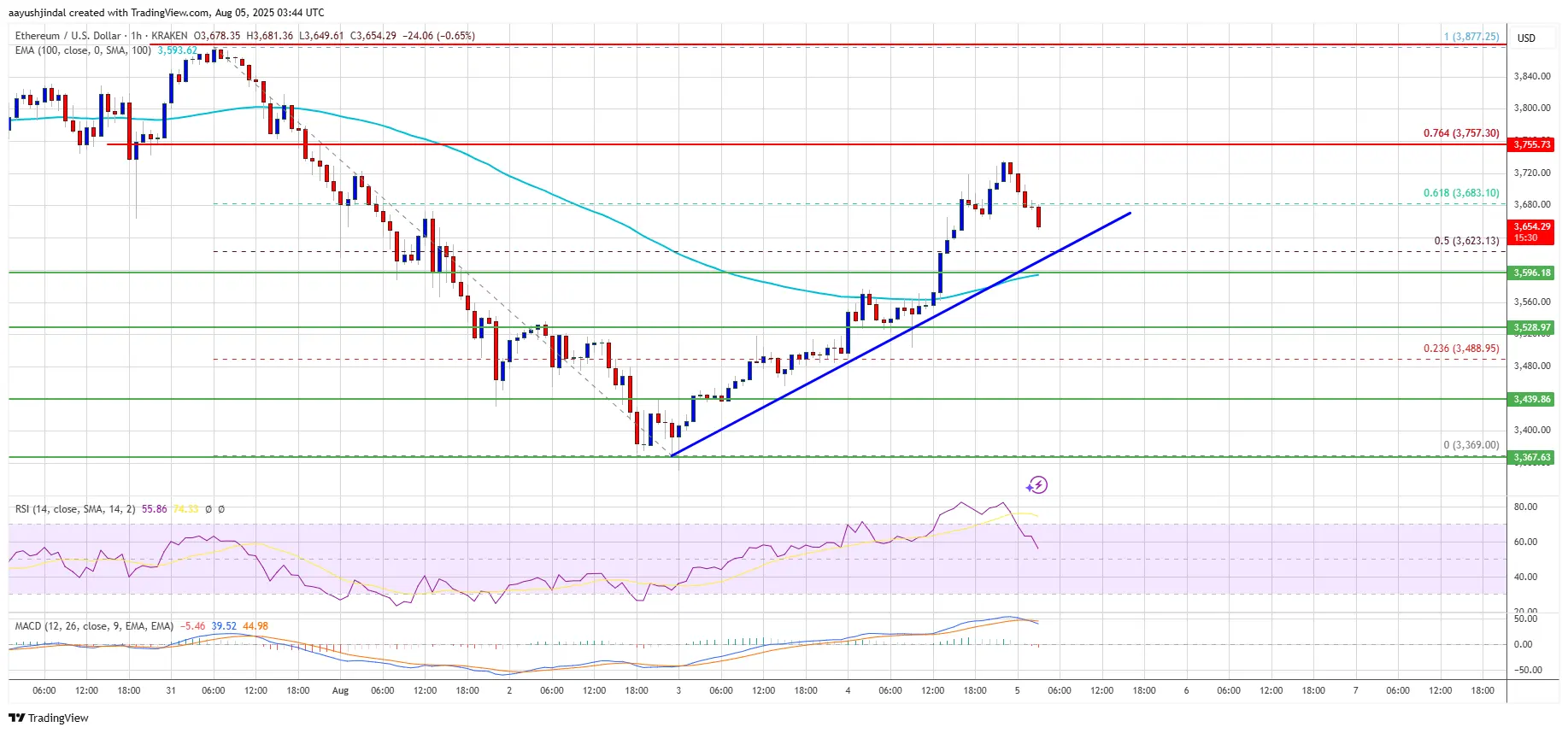 Ethereum price failed to recover further above $3,650. ETH is trimming gains and might decline furth