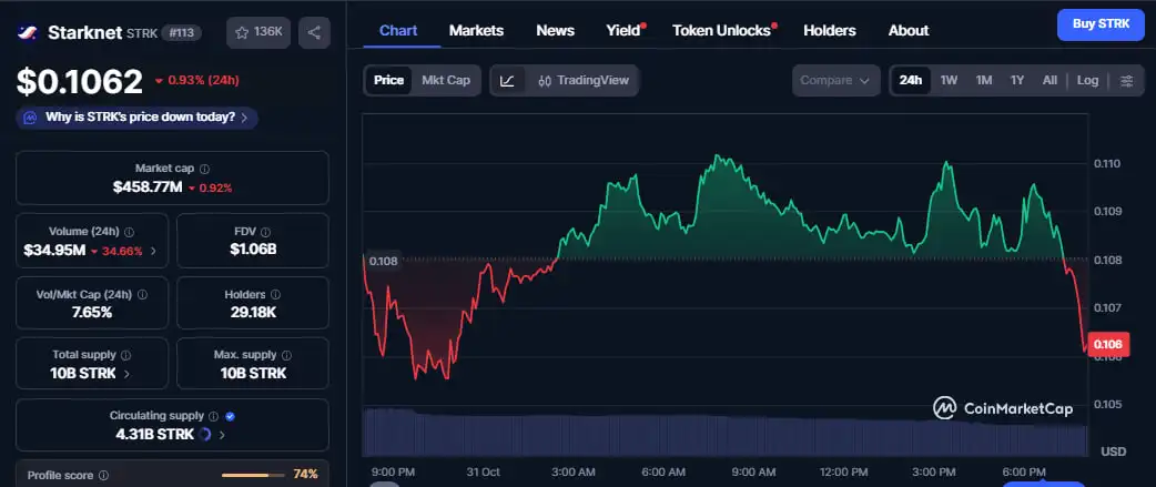 Starknet (STRK) recently launched the first phase of its staking program, triggering a 10% price sur
