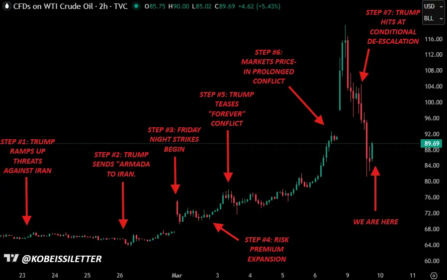 Oil prices fell while cryptocurrencies posted modest gains on Monday after US President Donald Trump