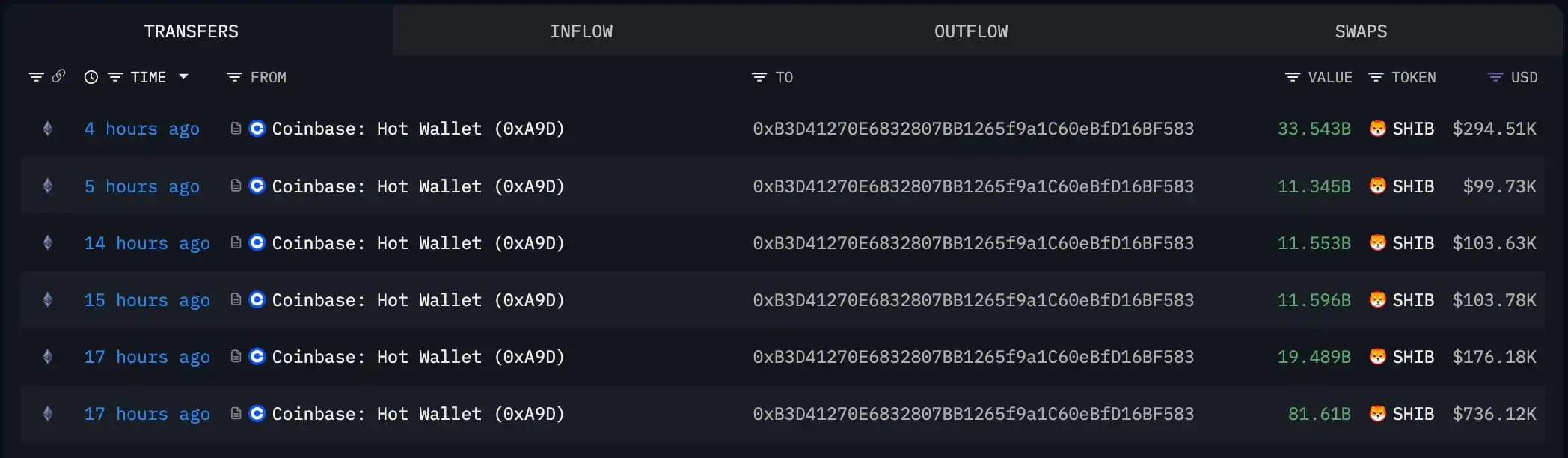 An interesting SHIB story emerged overnight as one wallet spent the day consistently withdrawing Shi