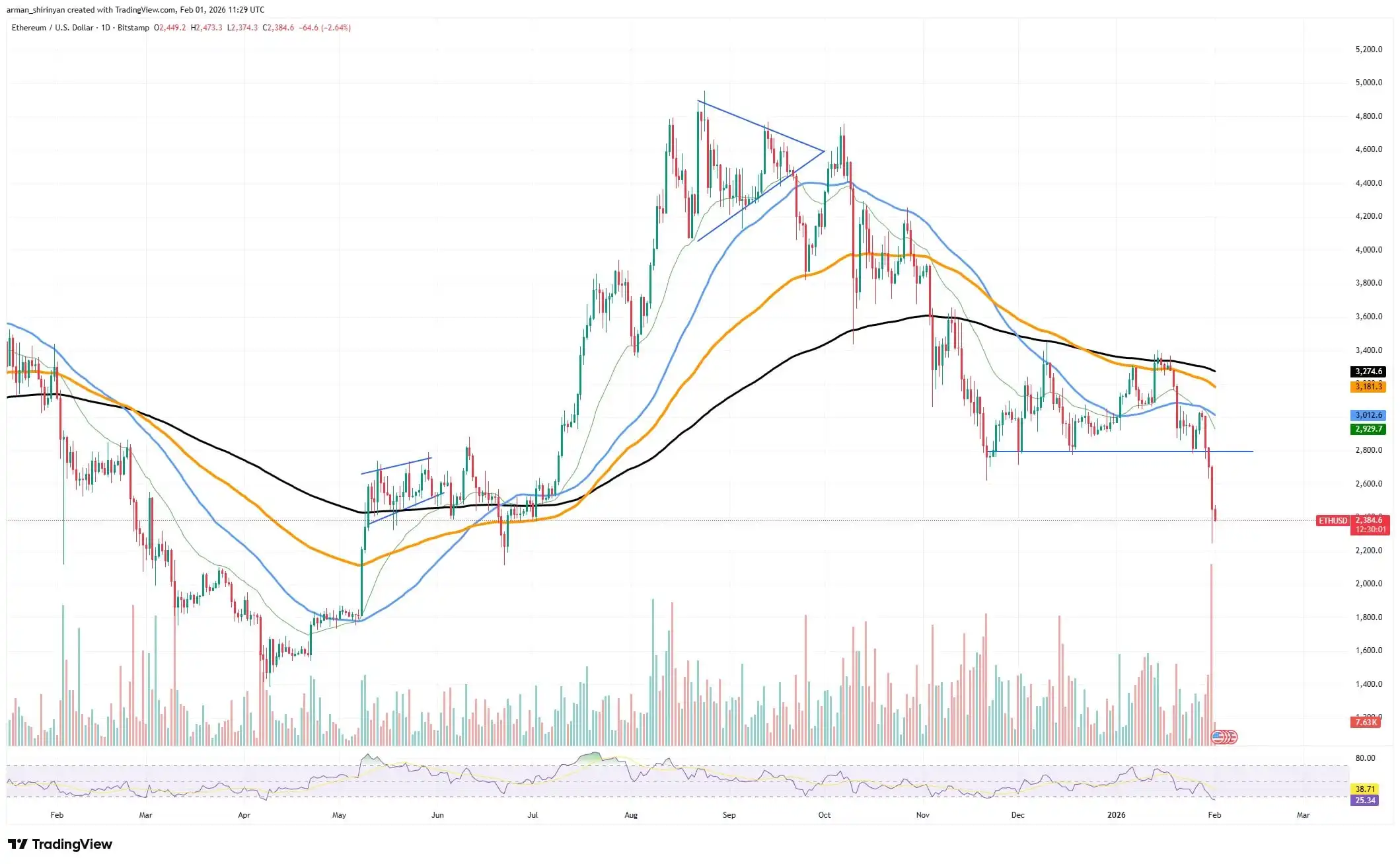 After failing to hold its position above significant moving averages, Ethereum's price action fell s
