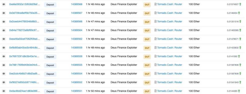 1@deusdao Deus Finance was exploited in https://t.co/bfYCQcz5rZ, leading to the gain of ~$3M for the hacker (The protocol loss may be larger), including 200,000 DAI and 1101.8 ETH