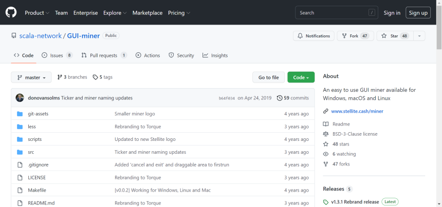 Proyecto original de minería de criptomonedas. Fuente: Github