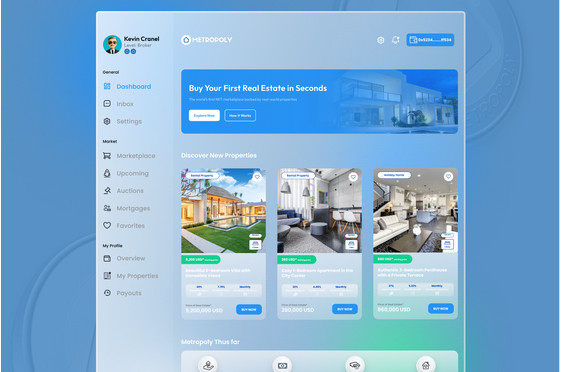 El equipo se propuso construir una plataforma que hiciera accesible el mercado inmobiliario a usuarios de todo el mundo, independientemente de su país de origen o historial crediticio previo. Eso es exactamente lo que han conseguido crear con el Mercado Metropoly. Como resultado, los inversores pueden iniciar fácilmente sus carteras inmobiliarias sin necesidad de bancos, papeleo, comprobaciones de crédito ni comisiones ocultas. En su lugar, los usuarios sólo tienen que dirigirse al Mercado Metropoly y comprar una NFT.